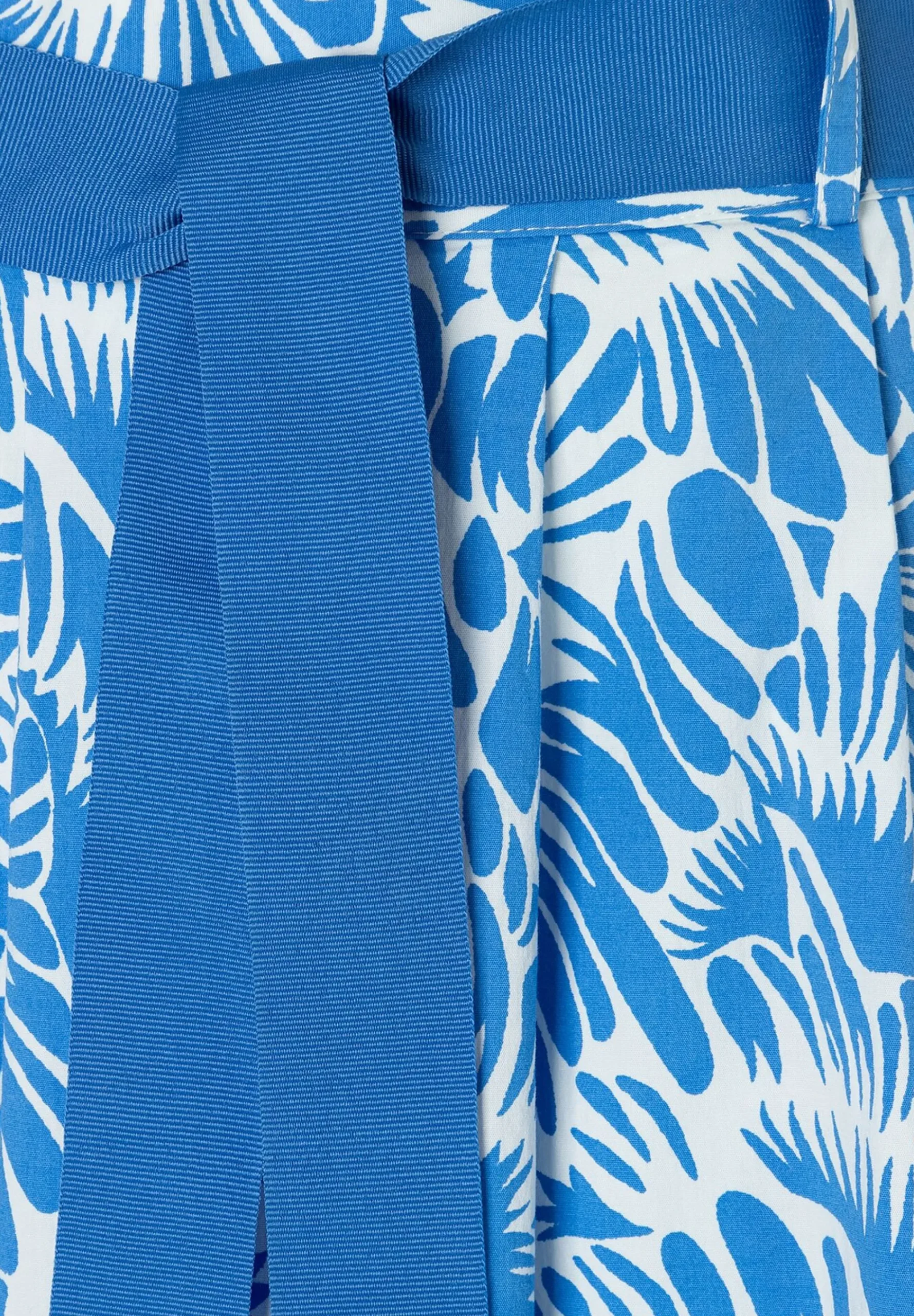 Den weit-ausgestellten Baumwollrock von MORE & MORE mit abstraktem Flowerprint in blau/weiß und blauem Ripsgürtel kön…