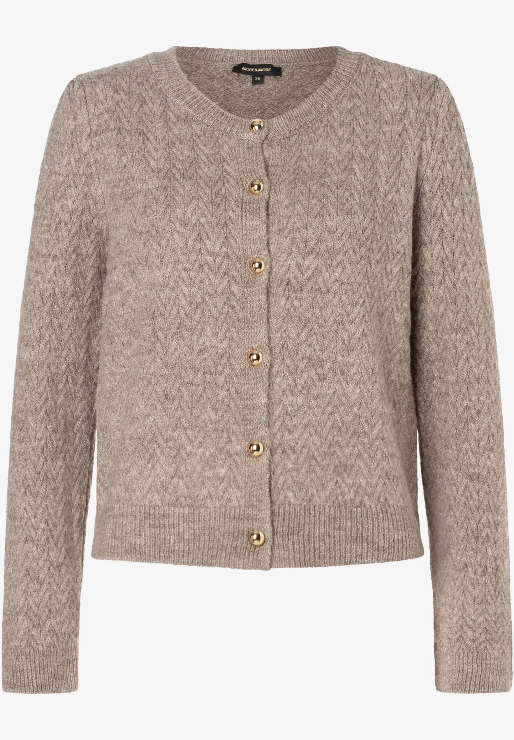 Die attraktive Strickjacke von MORE & MORE mit rundem Ausschnitt und dekorativen Kugelknöpfen sieht sowohl zum fließenden Rock als auch zur klassischen Nadelstreifenhose und zur verwaschenen Jeans einfach super aus.