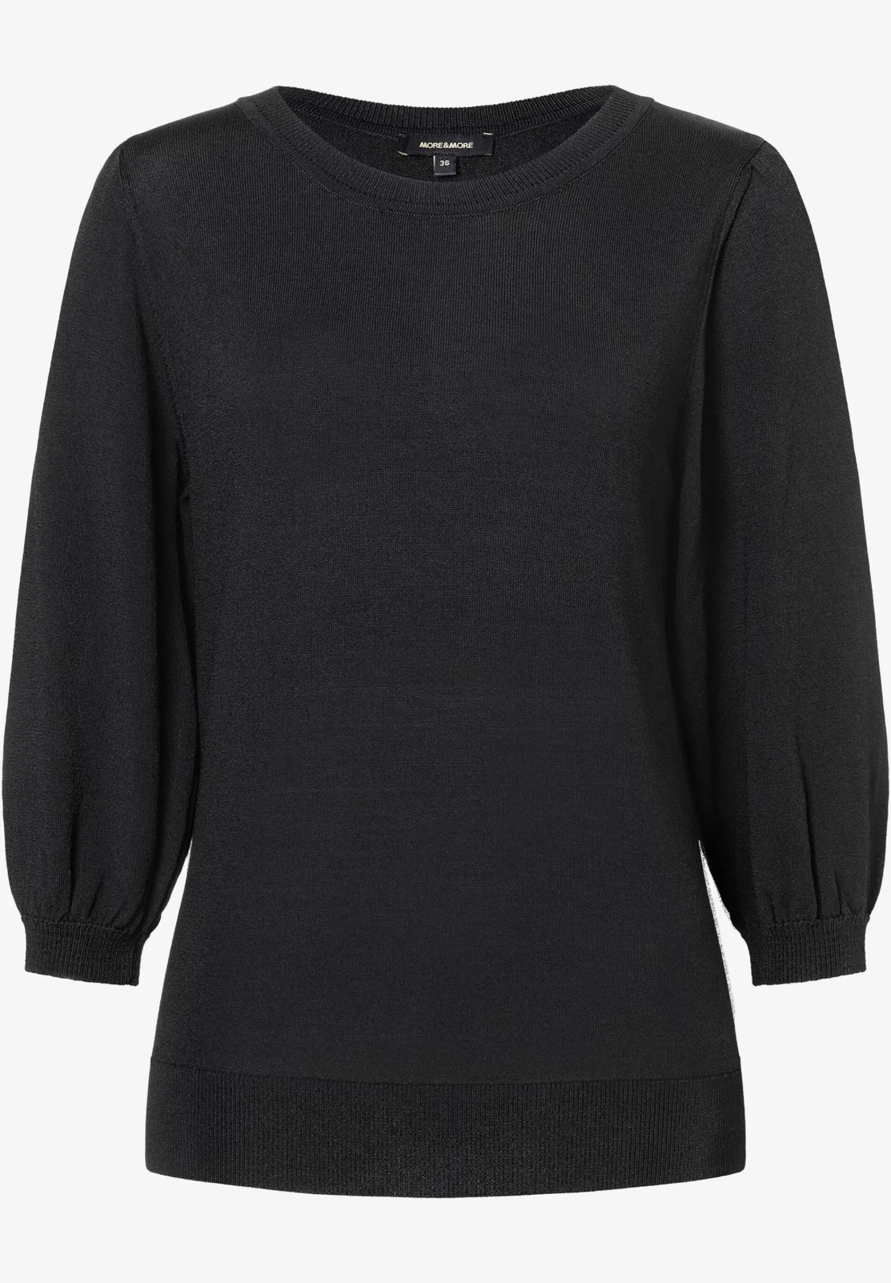 Der super-feminine Feinstrick-Pullover von MORE & MORE mit 3/4 lange Puffärmeln sieht besonders süß mit weiten Röcken aus, kann aber auch zur eleganten Marlenehose und zur Jeans gestylt werden.