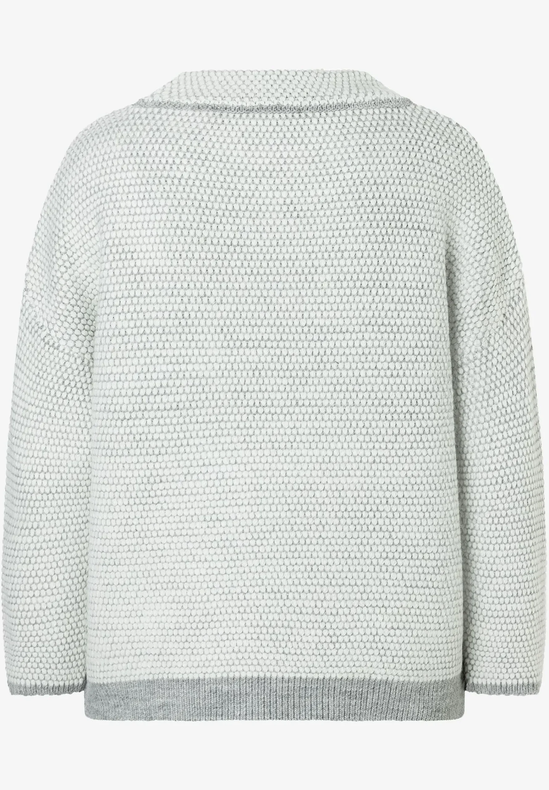 Der attraktive Struktur-Pullover von MORE & MORE in grau/ecru sieht sowohl zum Rock als auch zur Hose sehr cool aus.