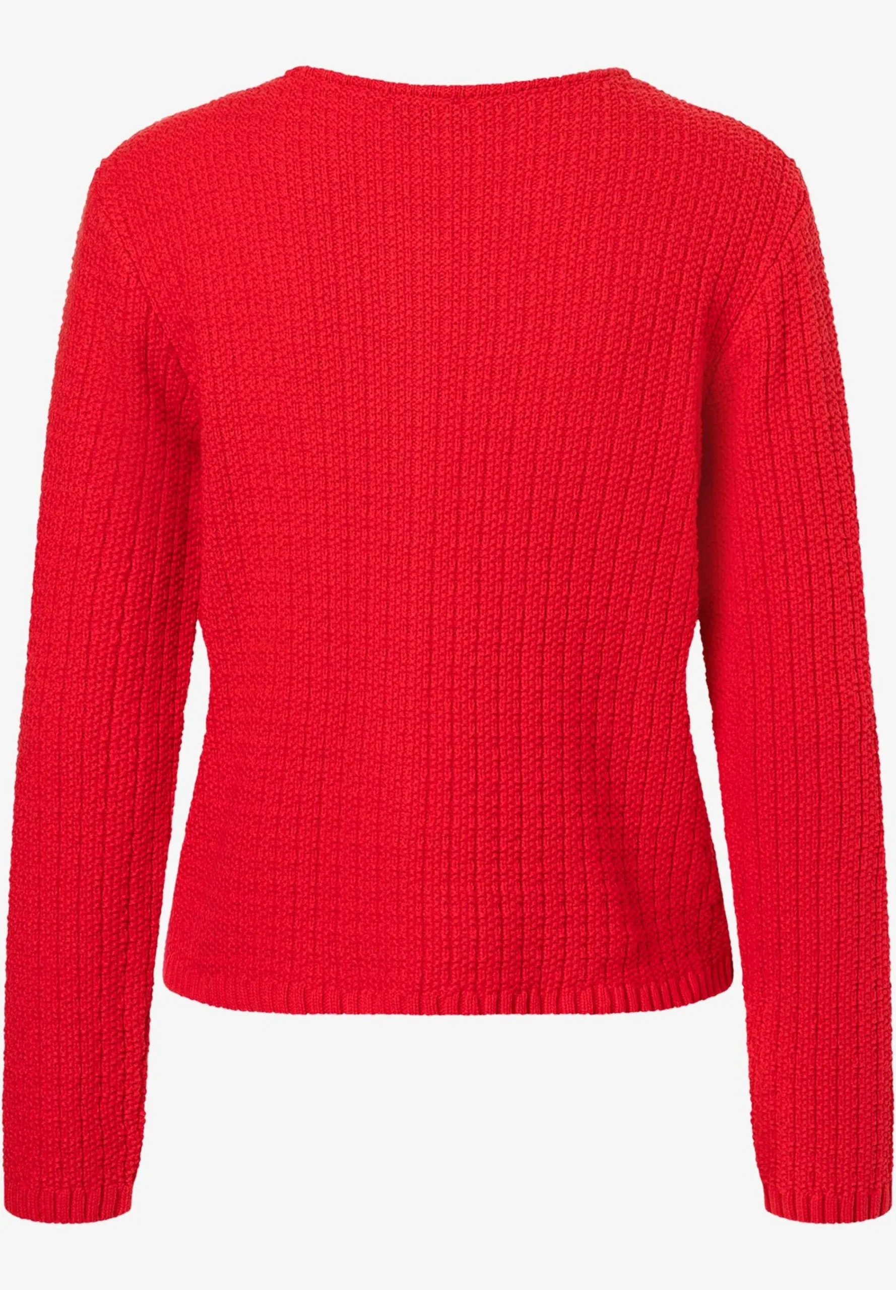 Den soft-roten Cardigan von MORE & MORE mit goldfarbenen Knöpfen können Sie sehr vielseitig stylen, mal elegant mit Marlenehose und Heels, mal lässig mit verwaschener Jeans und Sneakers.
