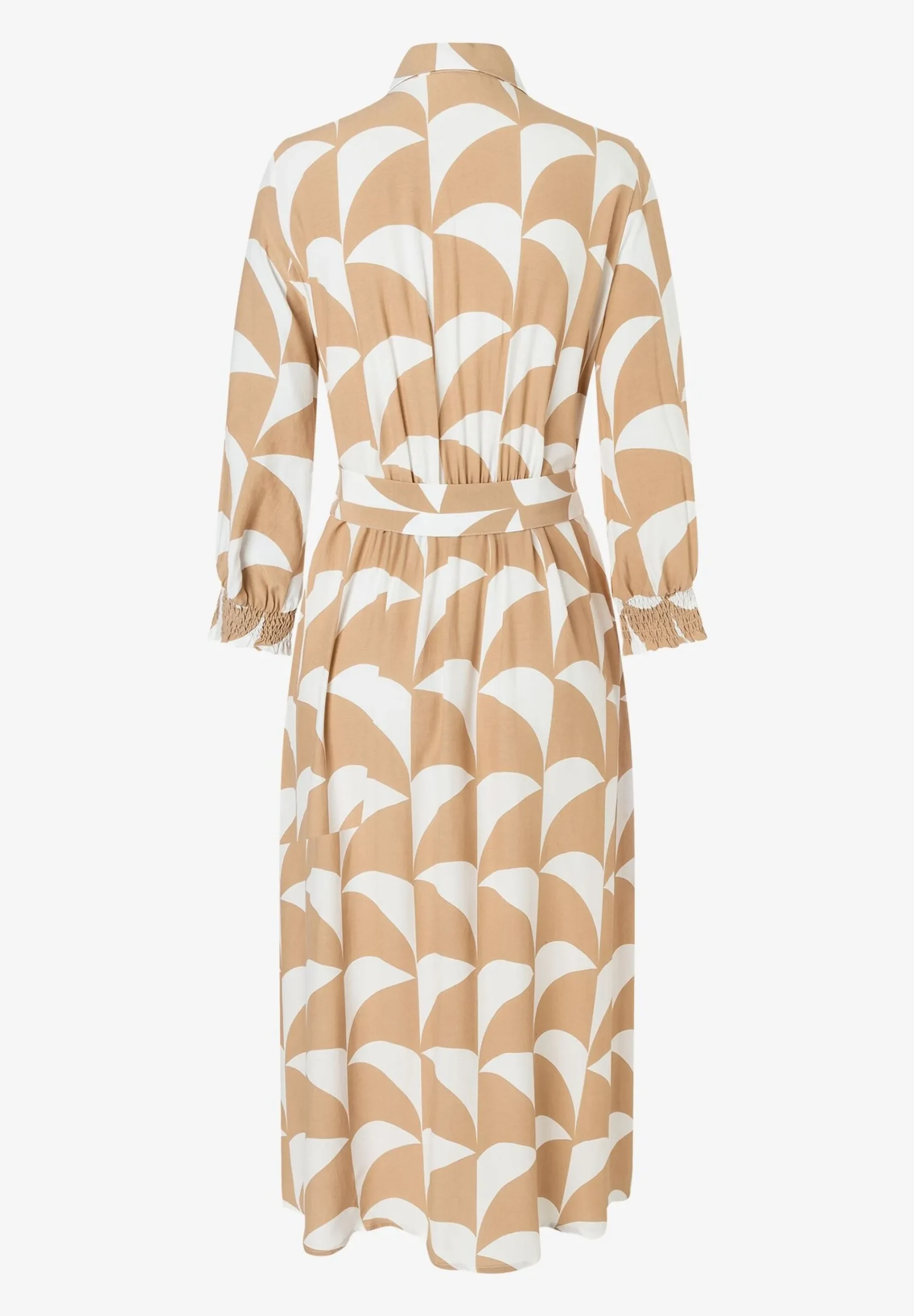Das durchgeknöpfte Printkleid von MORE & MORE mit grafischem Dessin in offwhite/camel kann jetzt mit rustikalem Cardiga…