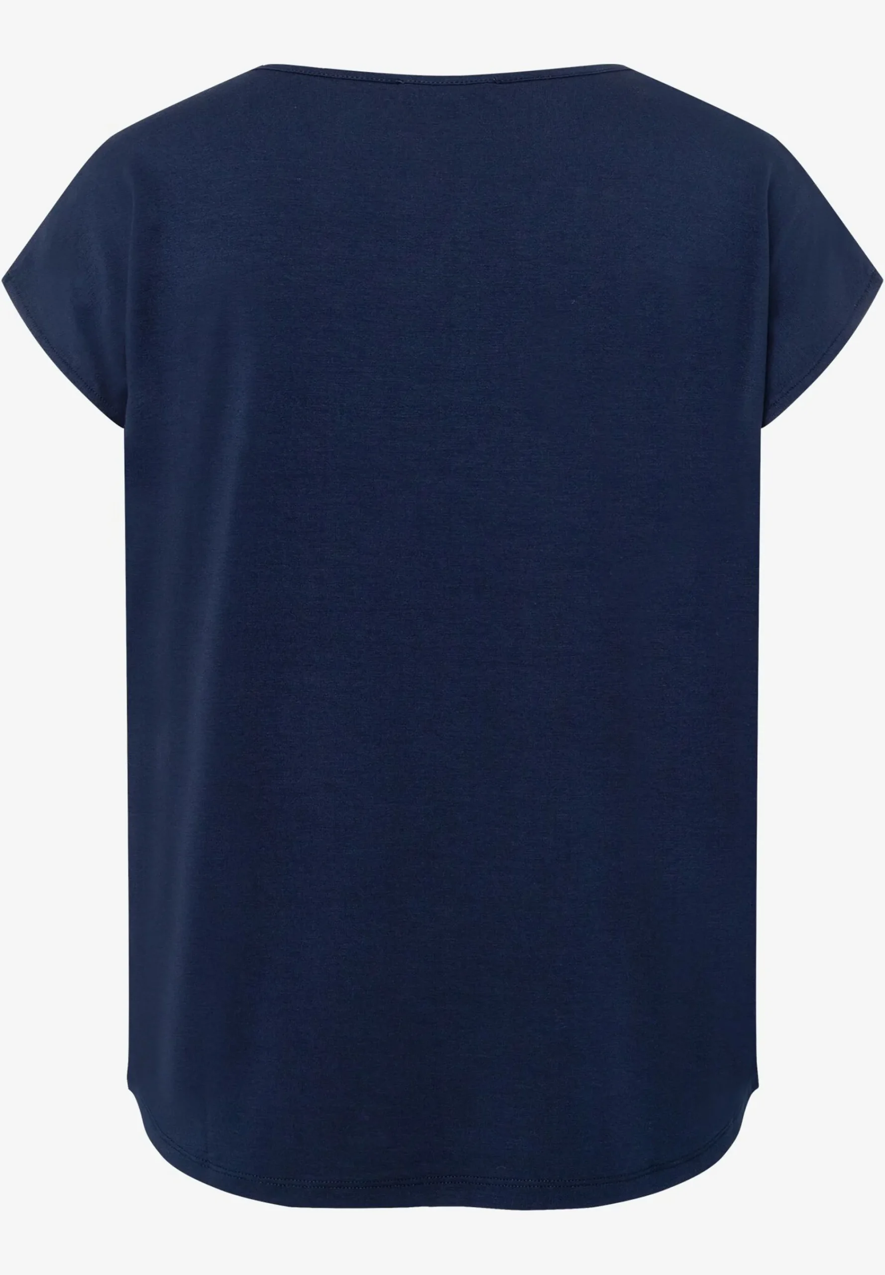 Das feminine Blusenshirt von MORE & MORE mit grafischem Print in blau/beige/ecru bietet die perfekte Mischung aus Bluse und T-Shirt und ist sehr vielseitig kombinierbar.