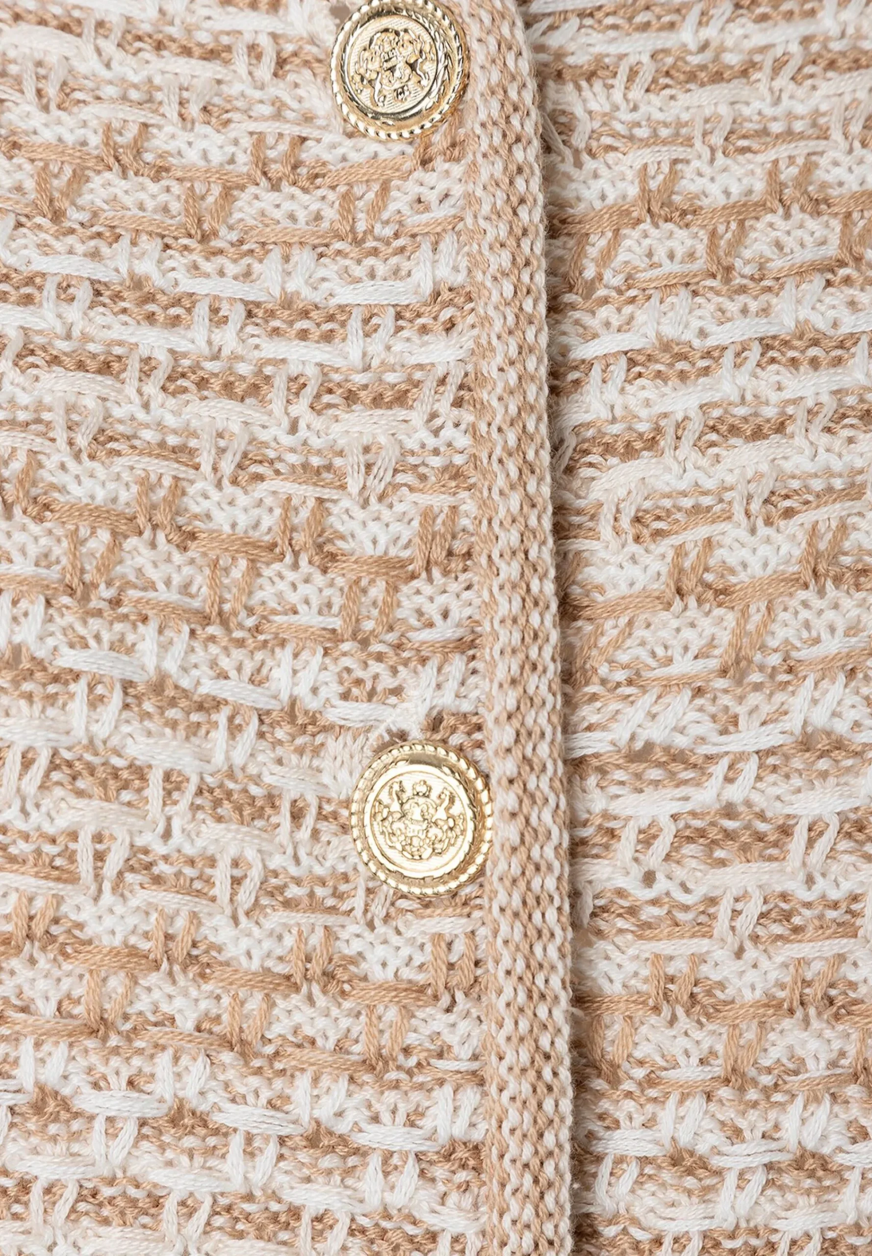 Den camel/beige gemusterten Cardigan von MORE & MORE mit goldfarbenen Knöpfen können Sie sehr vielseitig stylen, mal e…