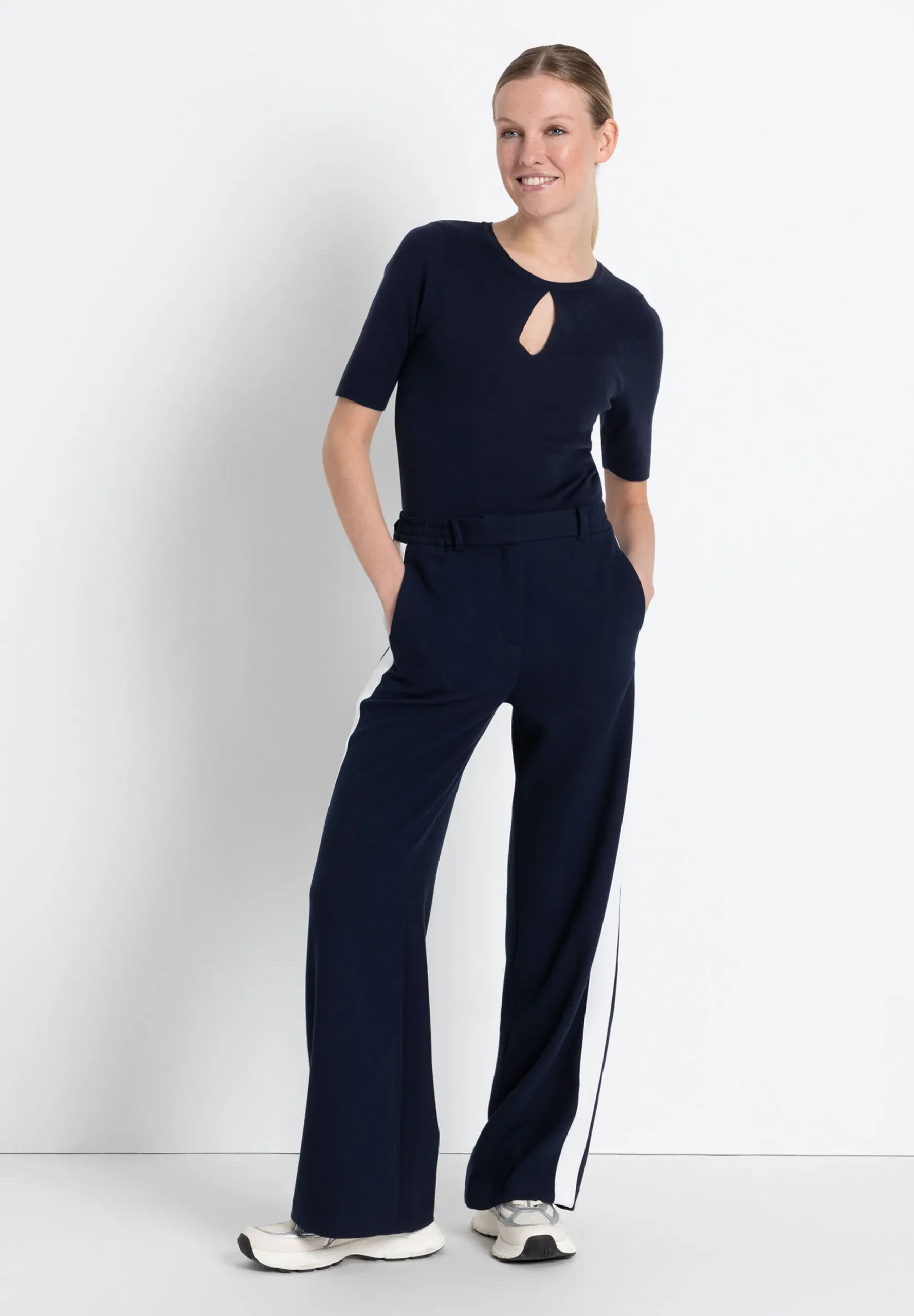 Der attraktive Pullover von MORE & MORE mit kurzen Ärmeln und kleinem Schlitz vorne kann sowohl zu Röcken als auch zu klassischen Hosen und Jeans getragen werden.