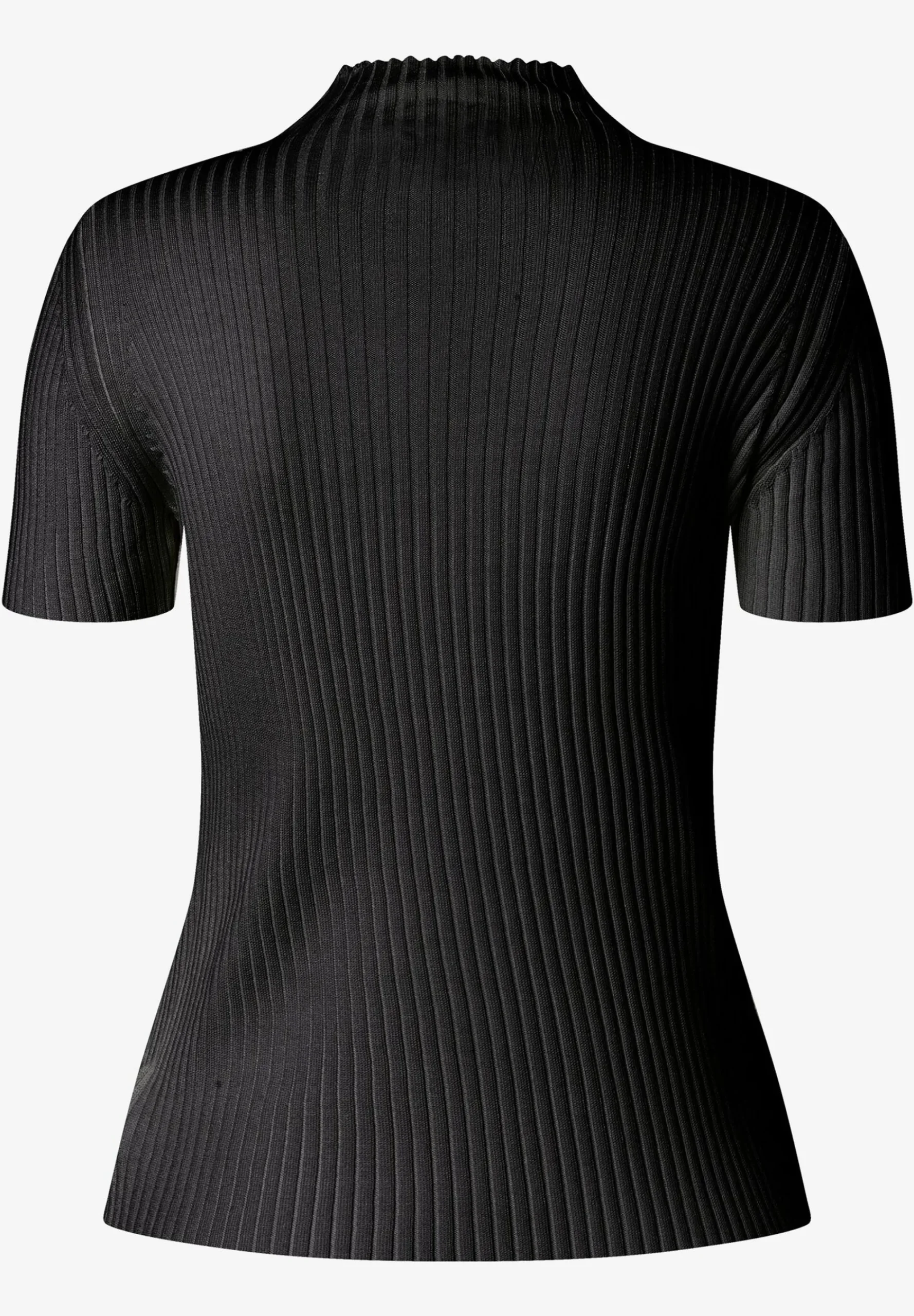 Der schmale Rippen-Pullover von MORE & MORE mit kurzen Ärmeln und Turtleneck ist ideal unter Blazern und Cardigans.