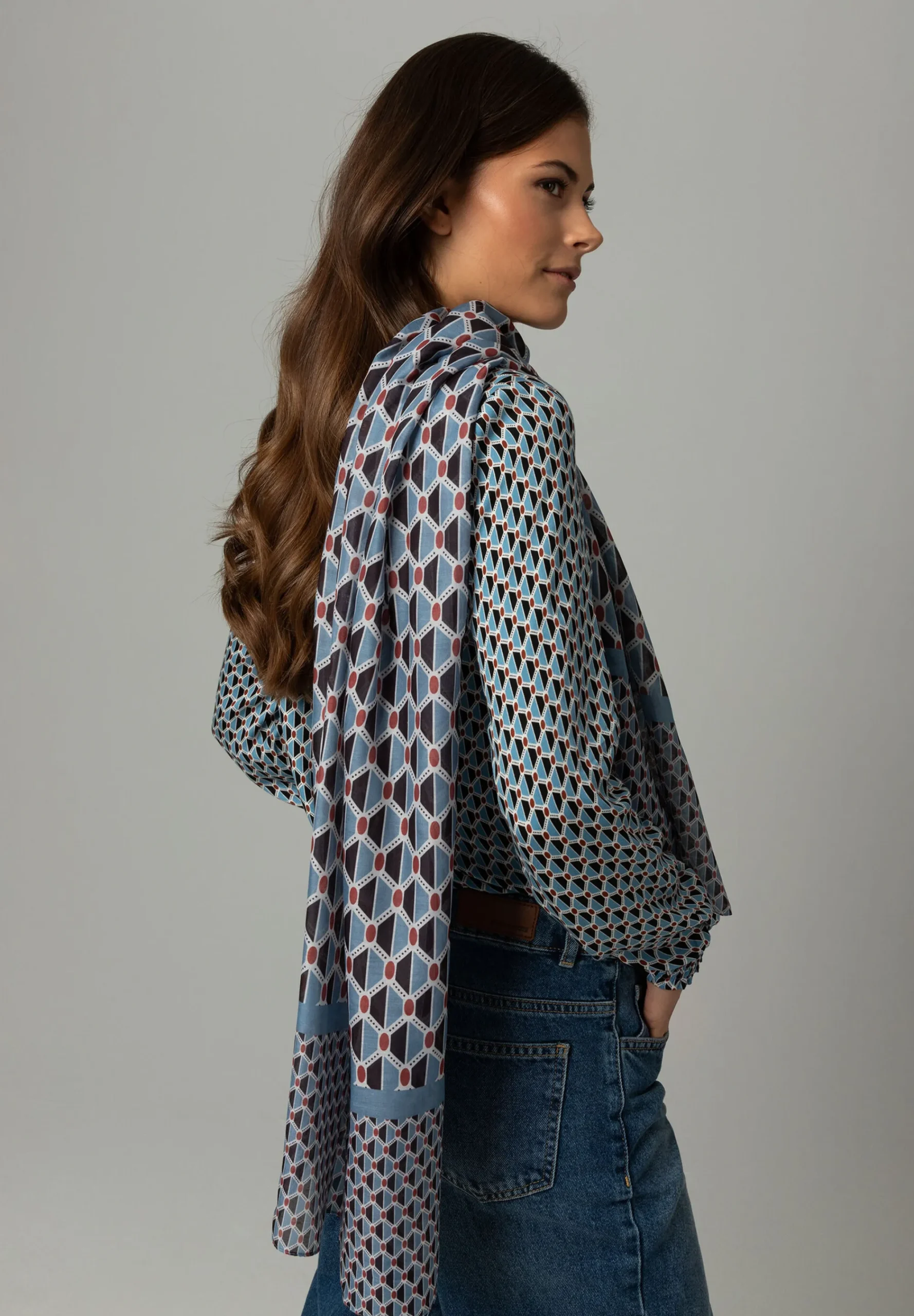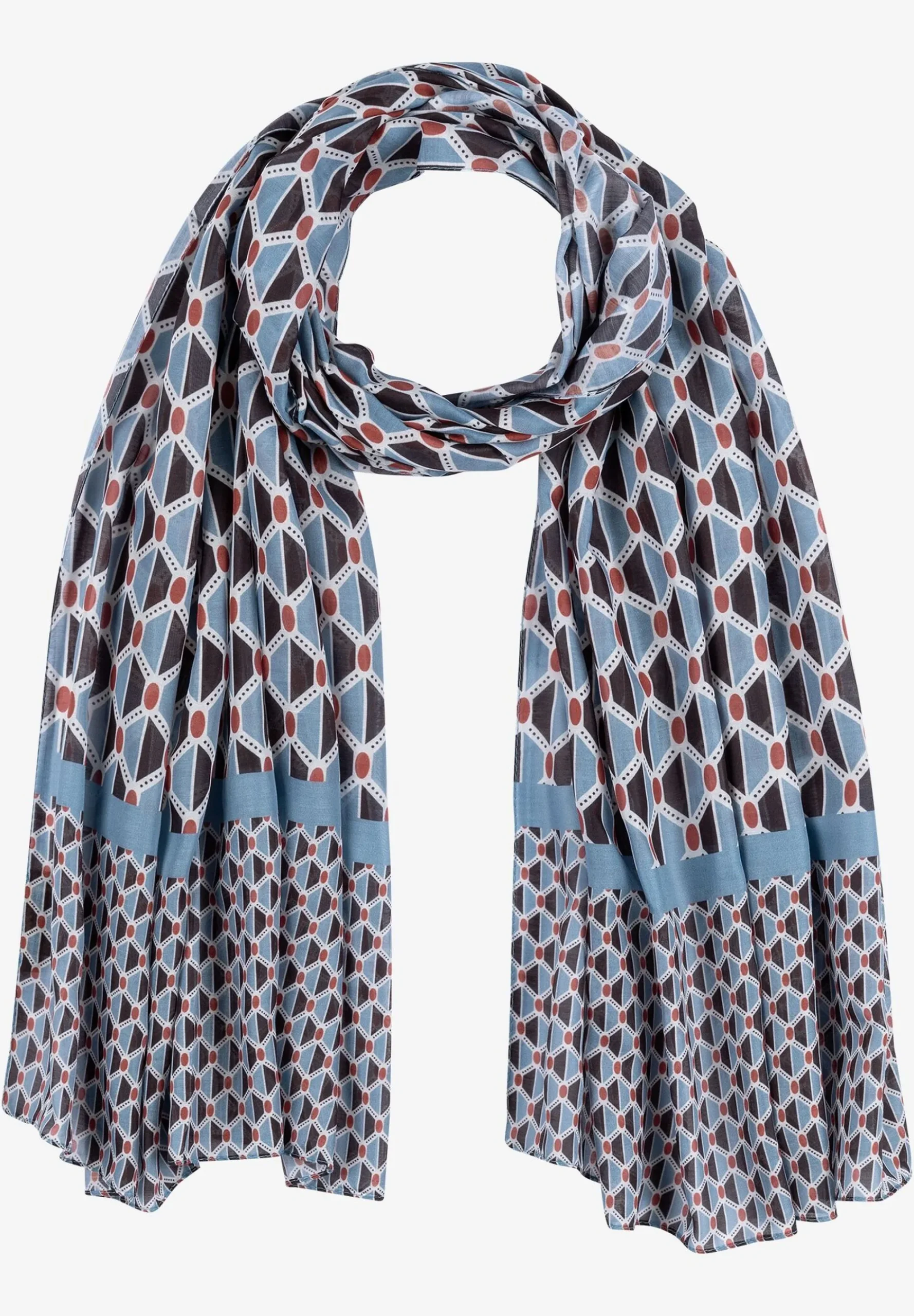 Fließender Schal von MORE & MORE mit grafischem Allover-Print in blau/schwarz/rostbraun/ecru.