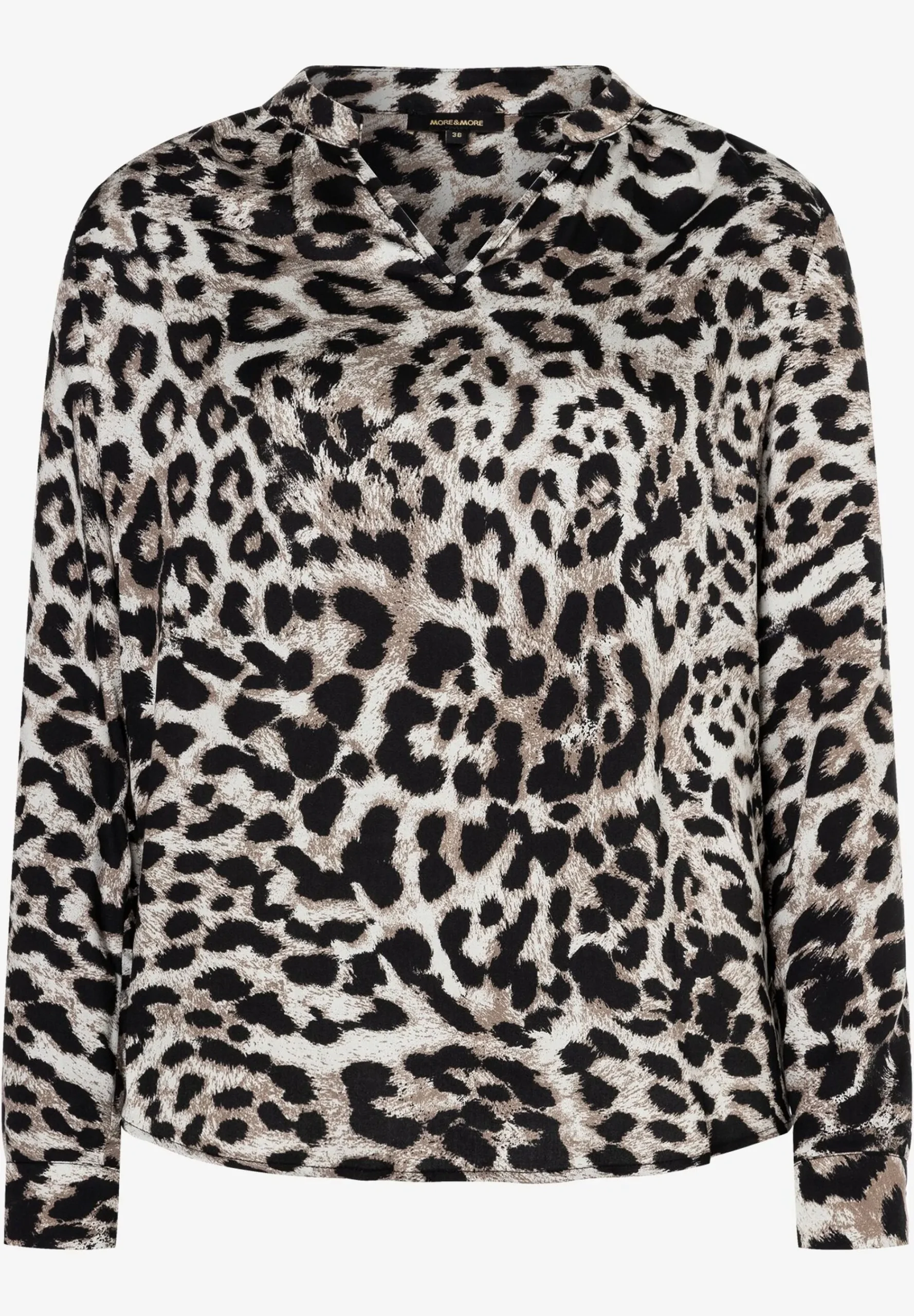 Die fließende Viskosebluse von MORE & MORE mit modernem Leoprint können Sie ganz klassisch mit gepflegter Businesshose kombinieren oder aber casual mit sportiver Jeans.