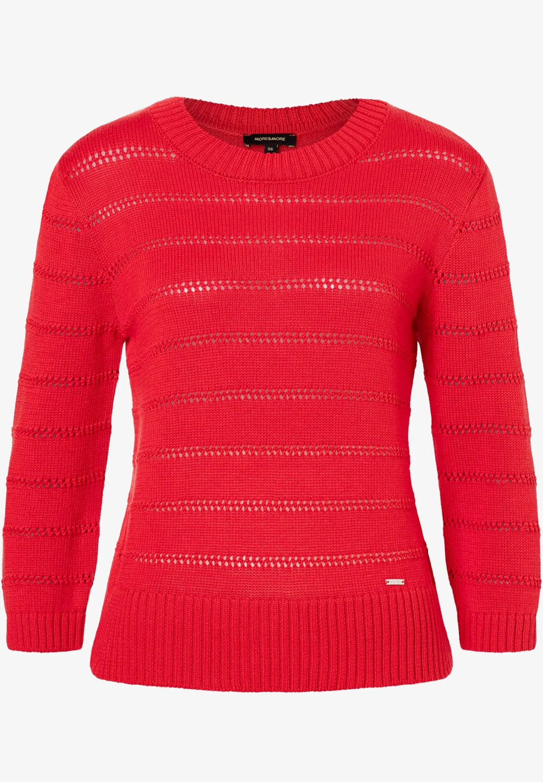 Attraktiver Ajour-Pullover von MORE & MORE mit rundem Ausschnitt und 3/4 langen Ärmeln.