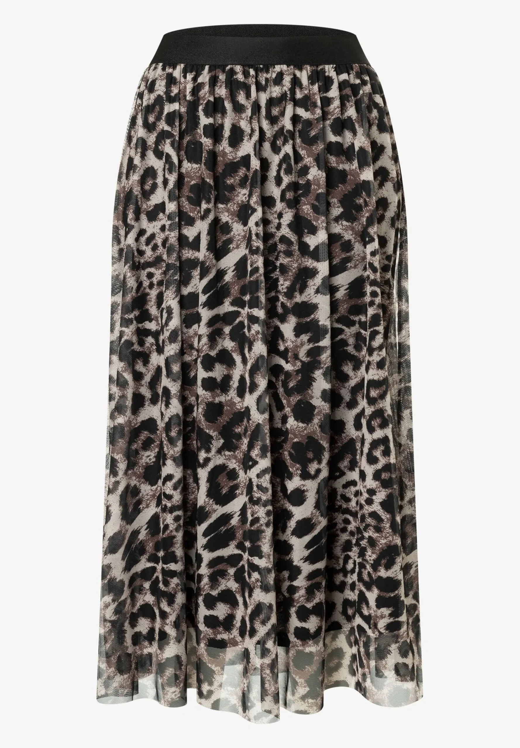 Der feminine Meshrock von MORE & MORE mit angesagtem Leo-Dessin und schwarzem Gummibund kann mit lässigem Pullover gena…