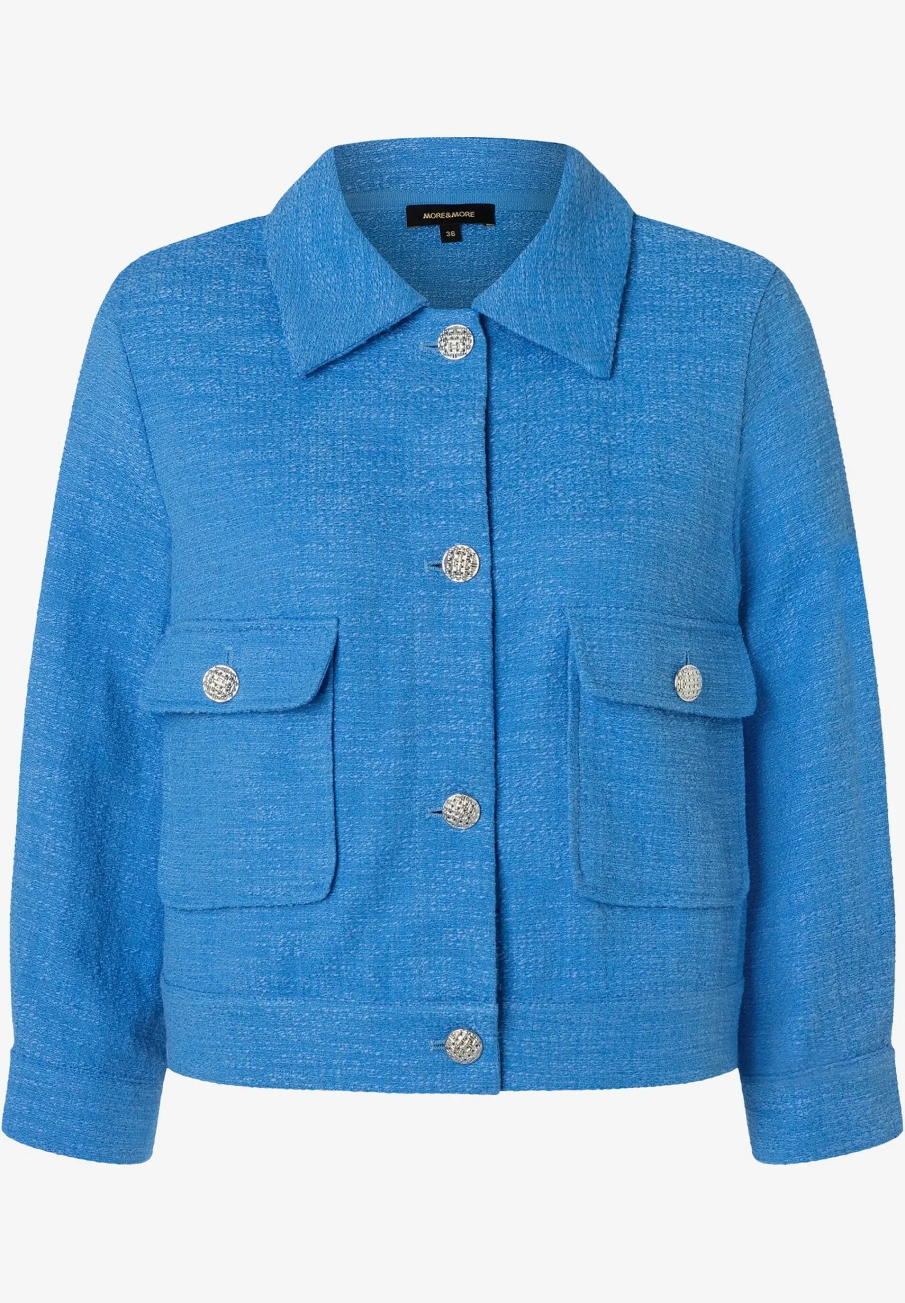 Die leichte Bouclé-Jacke von MORE & MORE mit dekorativen Metallknöpfen passt sowohl zu fließenden Röcken als auch zu klassischen Hosen und sogar zum Etuikleid ist sie eine tolle Ergänzung.