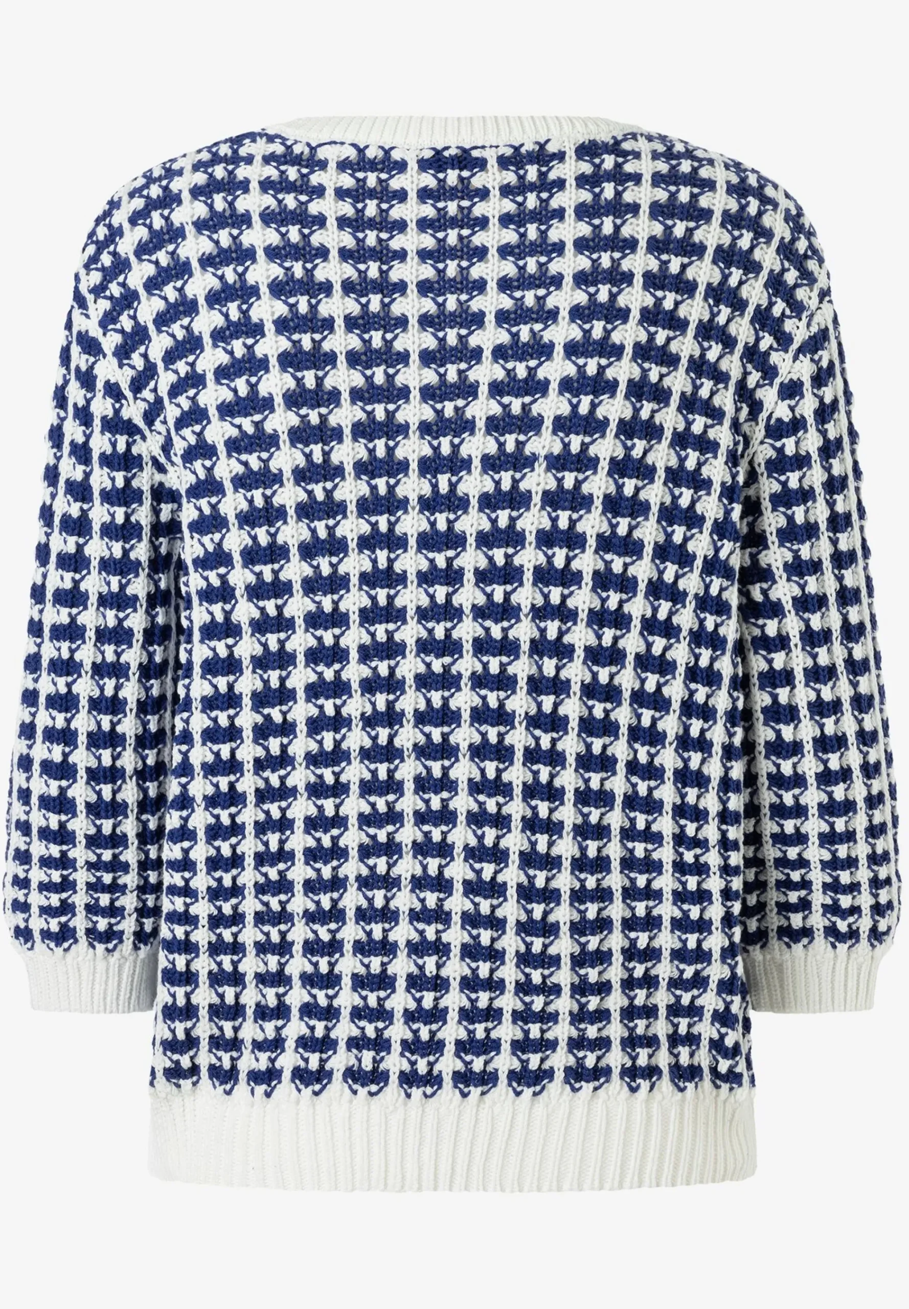 Der zweifarbig gemusterte Pullover von MORE & MORE mit 3/4 langen Ärmeln kann mit verwaschener Jeans genauso gut kombin…