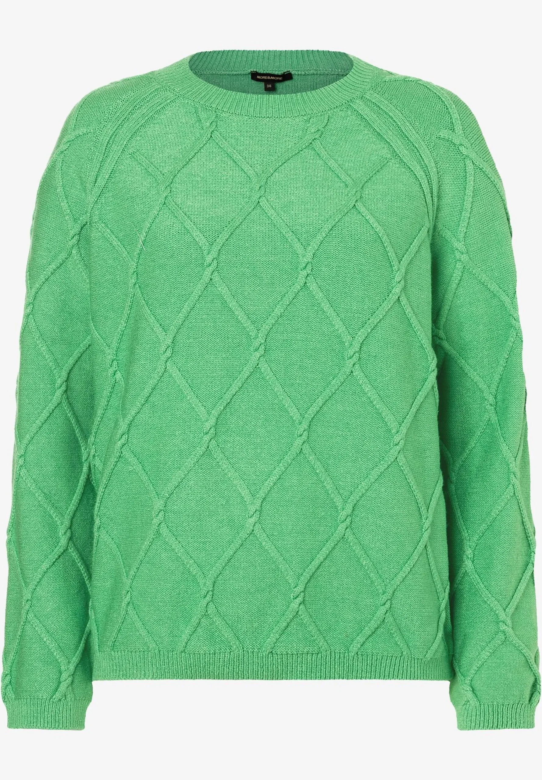 Der lässige Feinstrickpullover von MORE & MORE in der Trendfarbe grün besticht durch eine dekorative Rautenstruktur und sieht vor allem in Kombination mit hellen Naturtönen oder Jeans umwerfend gut aus.