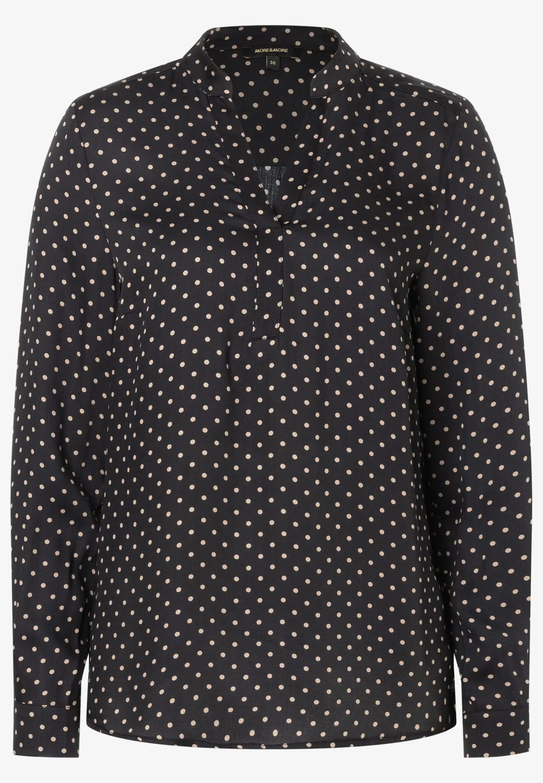 Die fließende Viskosebluse von MORE & MORE mit 2-farbigem Tupfenprint können Sie ganz klassisch mit gepflegter Businesshose kombinieren oder aber casual mit sportiver Jeans.