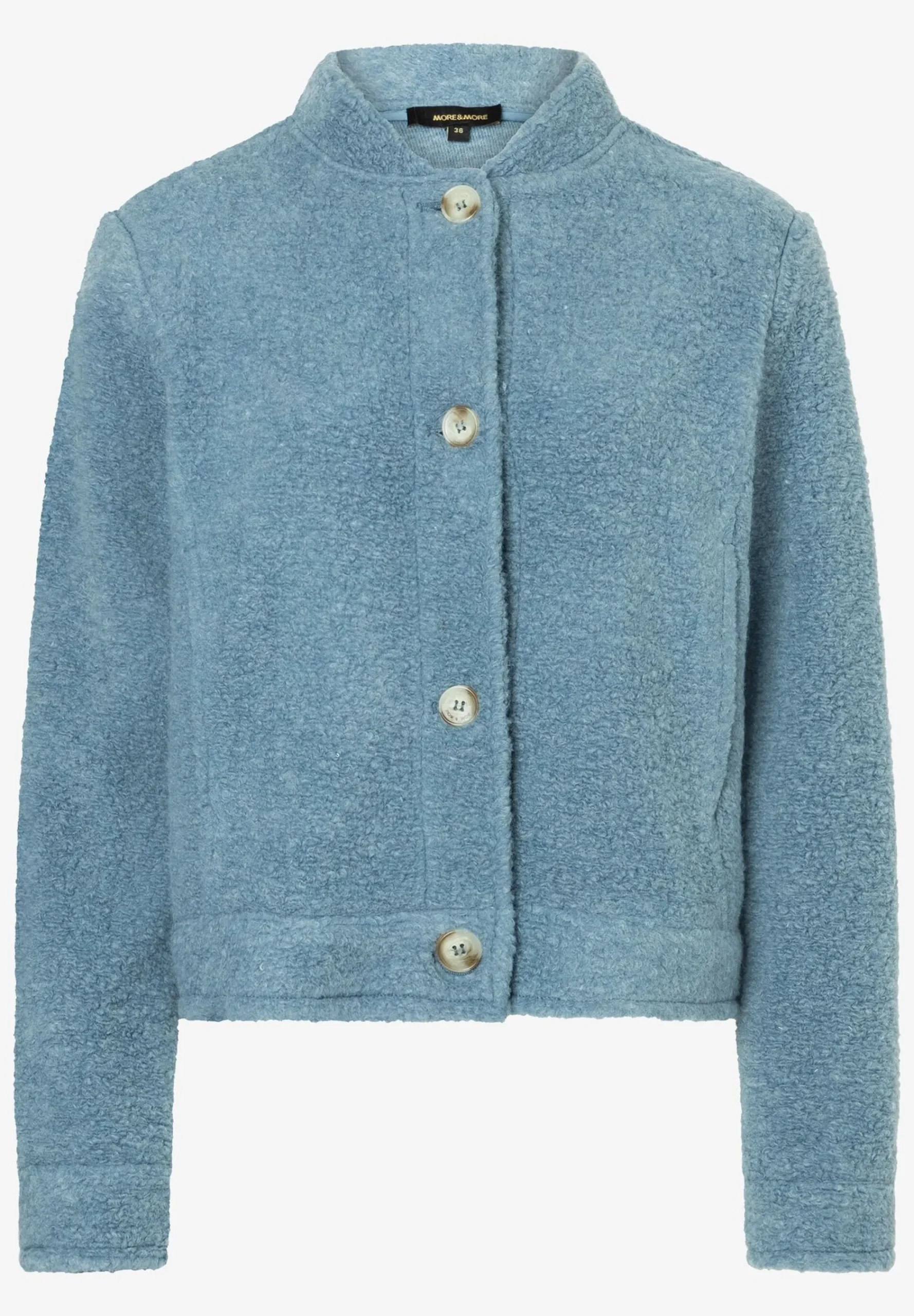 Die kurze Blousonjacke von MORE & MORE mit Wollanteil passt zum fließenden Printkleid genauso gut wie zur weiten Glencheck-Pants oder lässigen Jeans.