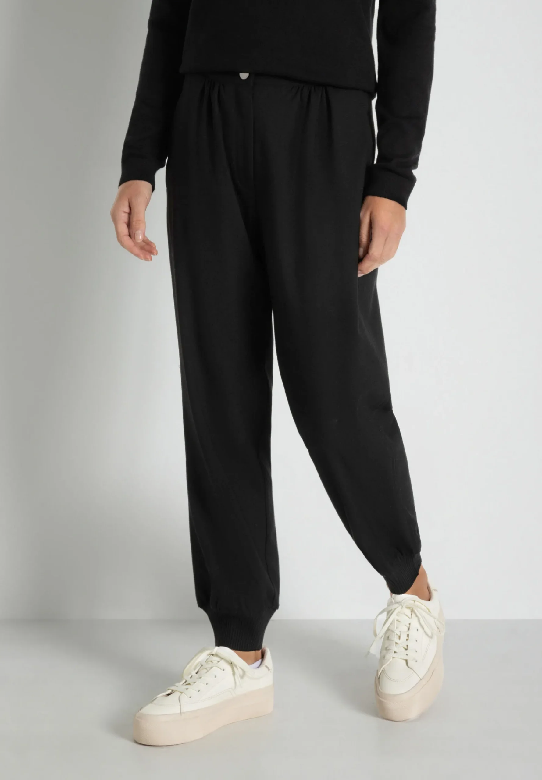Die lockere, sportive Hose von MORE & MORE mit elastischen Rippbündchen am Saum bietet einen hohen Tragekomfort und lässt sich sehr vielseitig kombinieren.