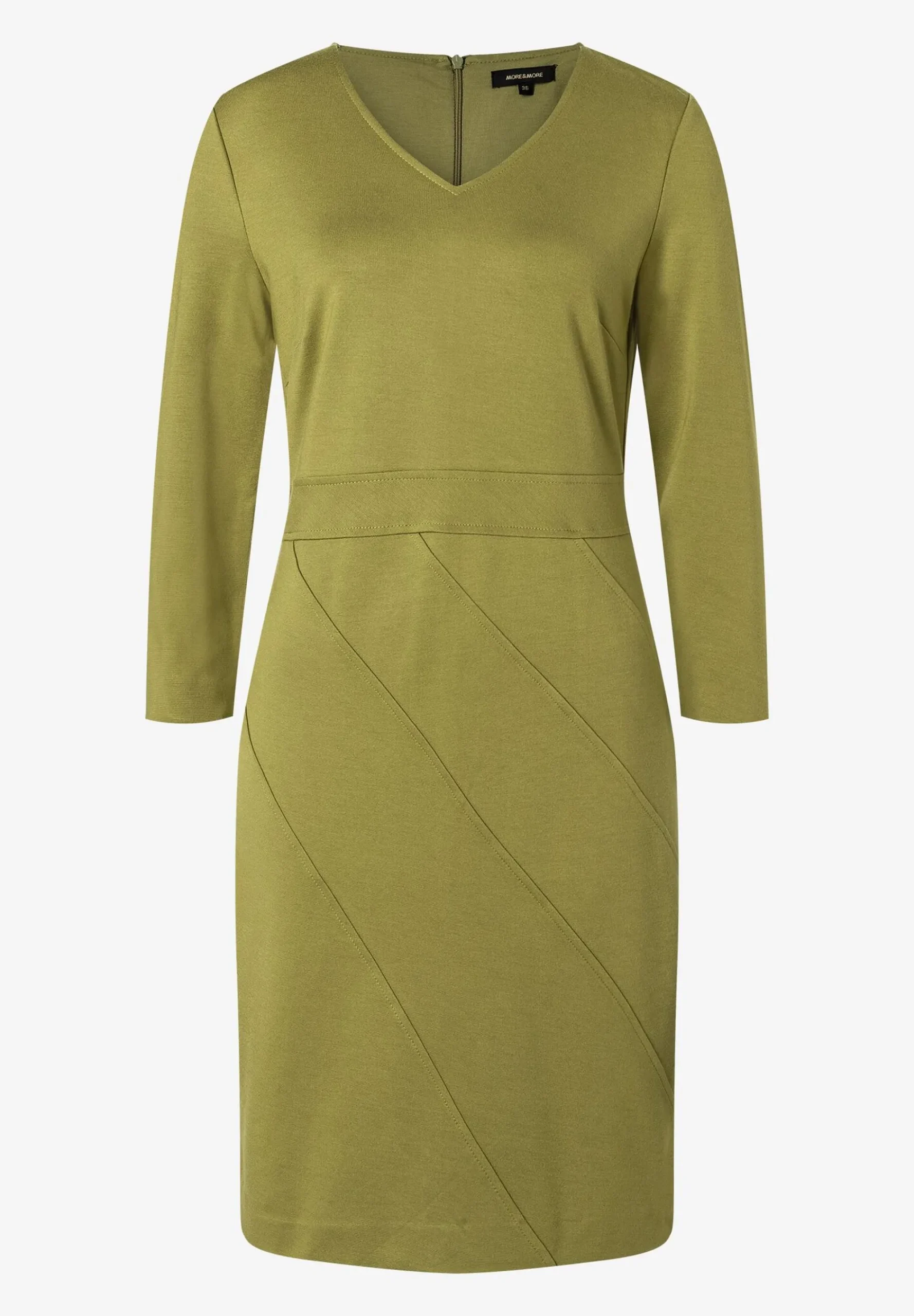 Das schlanke Jerseykleid von MORE & MORE mit femininem V-Ausschnitt und 3/4 langen Ärmeln präsentiert sich schlicht, aber mit WOW-Effekt, und bietet zudem einen hohen Tragekomfort. Stylen Sie es wahlweise mit klassischem Blazer, kurzem Cardigan oder lässigem Blouson zu einem stilvollen Look.