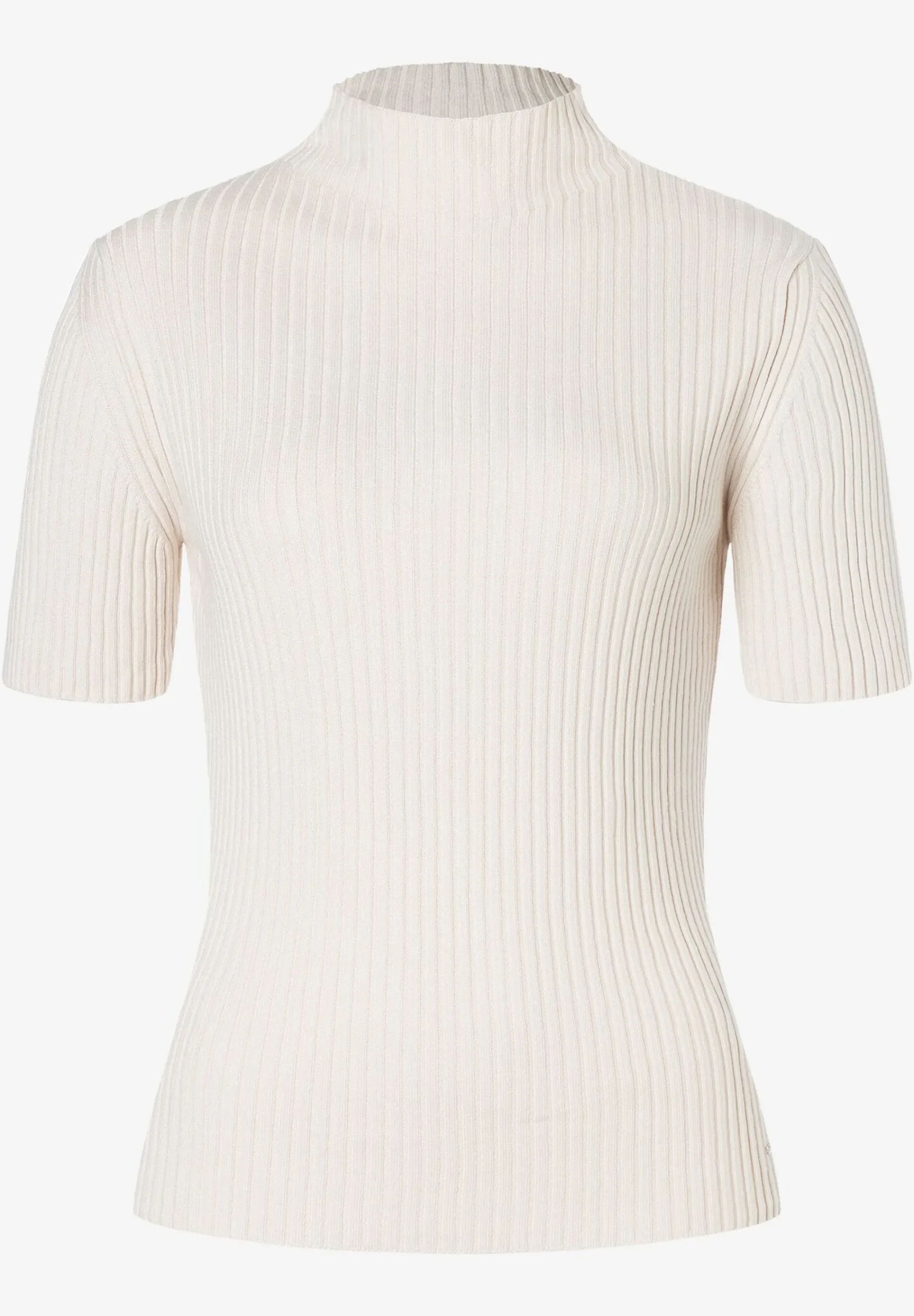 Der schmale Rippen-Pullover von MORE & MORE mit kurzen Ärmeln und Turtleneck ist ideal unter Blazern und Cardigans.schm…