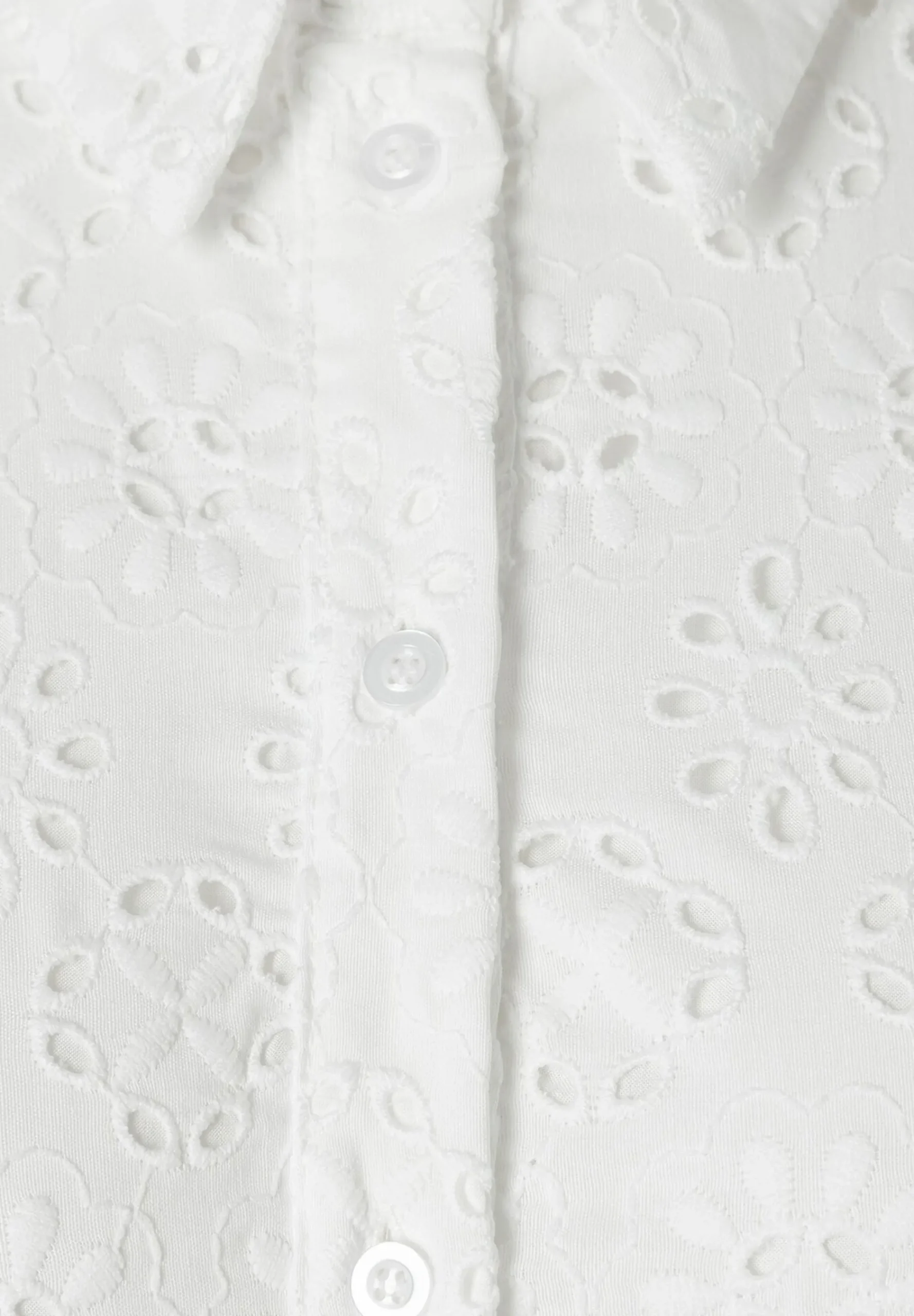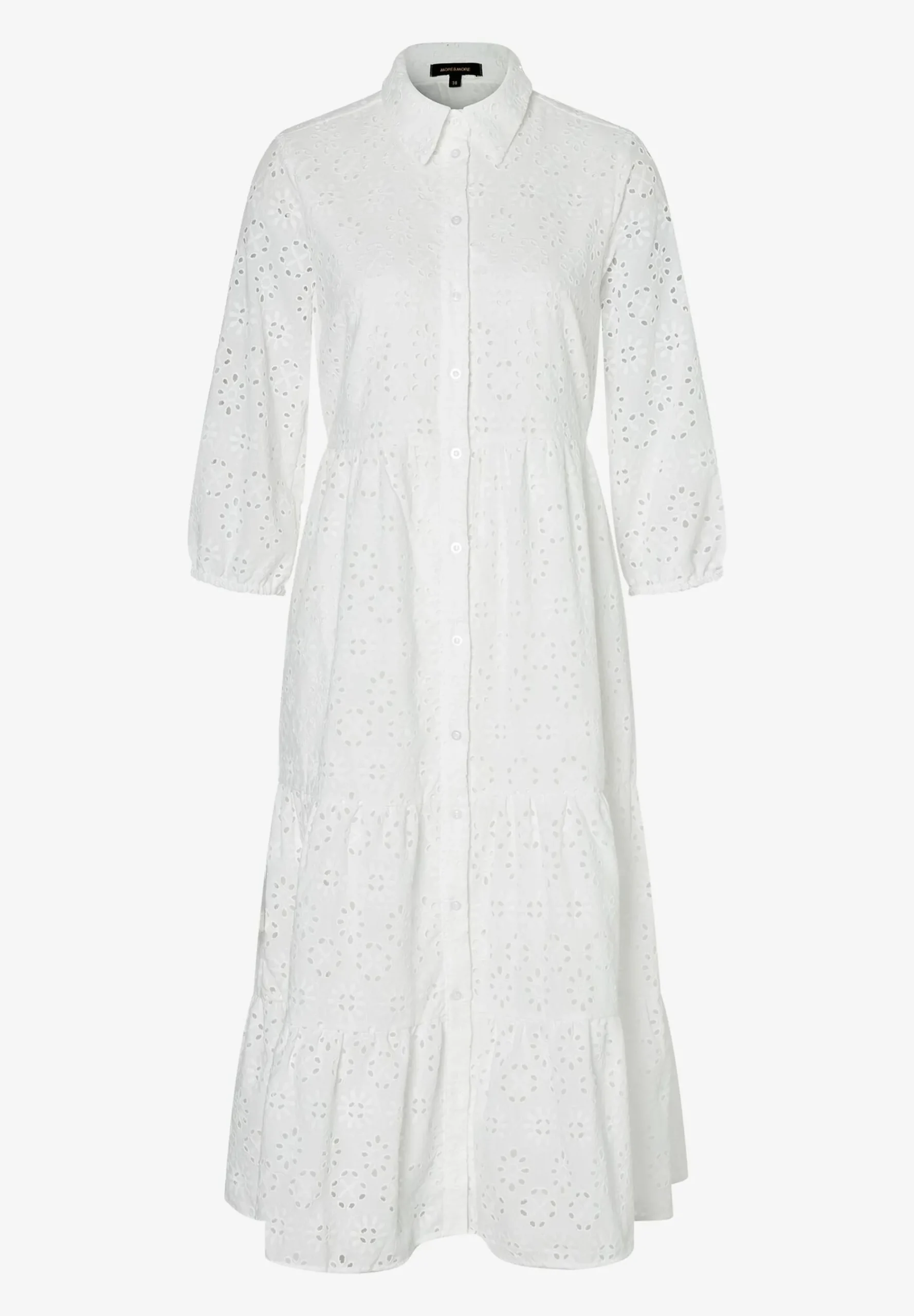 Das romantisch inspirierte Maxikleid von MORE & MORE aus weißer Lochspitze mit 3/4 langen Ärmeln sieht einfach umwerfend aus und präsentiert den neuen Sommer-Trend auf exzellente Art. Tragen Sie das durchgeknöpfte Kleid wahlweise mit Sandaletten, Sneakers oder Zehensandalen und fertig ist der perfekte Sommer-Look.