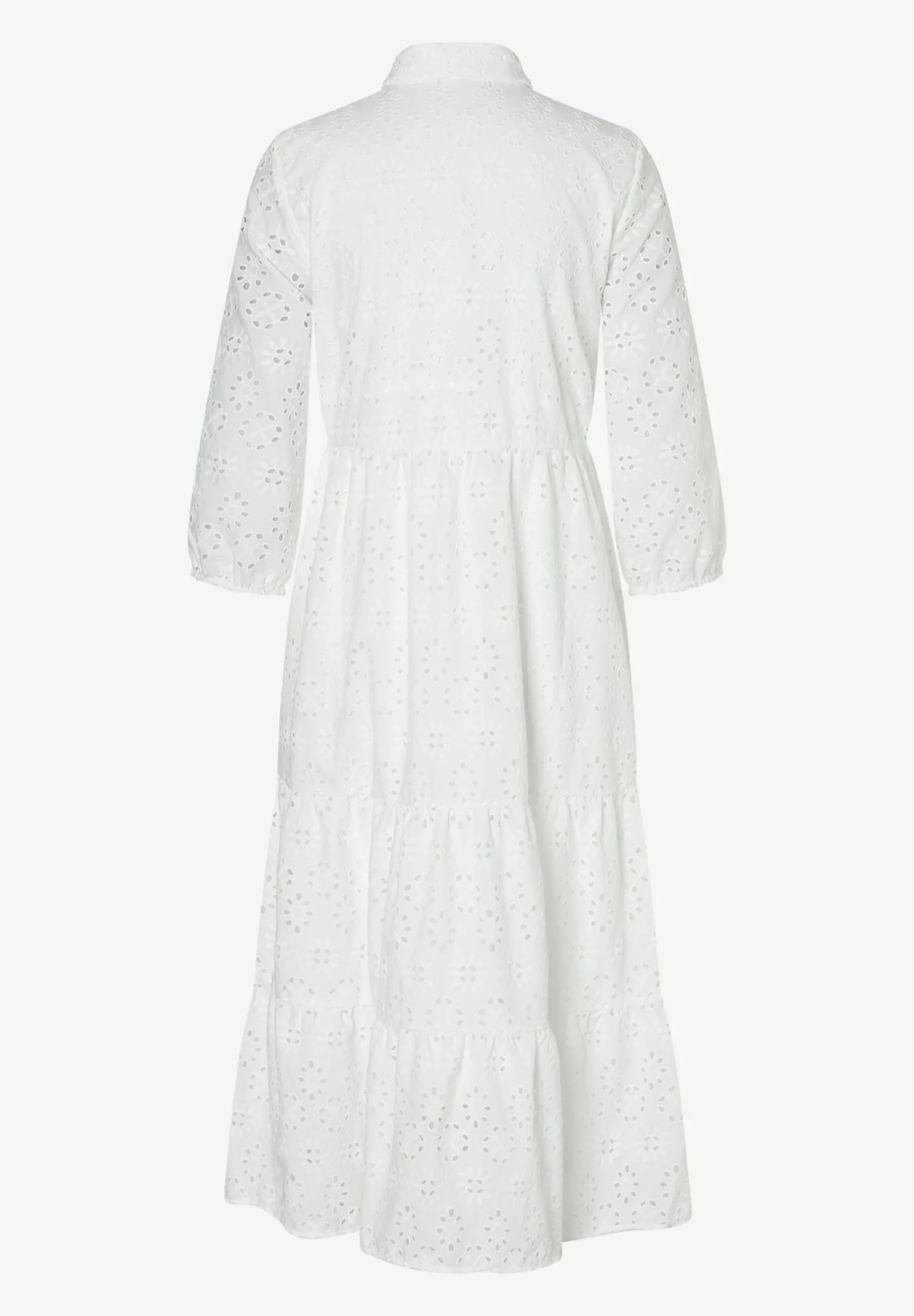 Das romantisch inspirierte Maxikleid von MORE & MORE aus weißer Lochspitze mit 3/4 langen Ärmeln sieht einfach umwerfe…