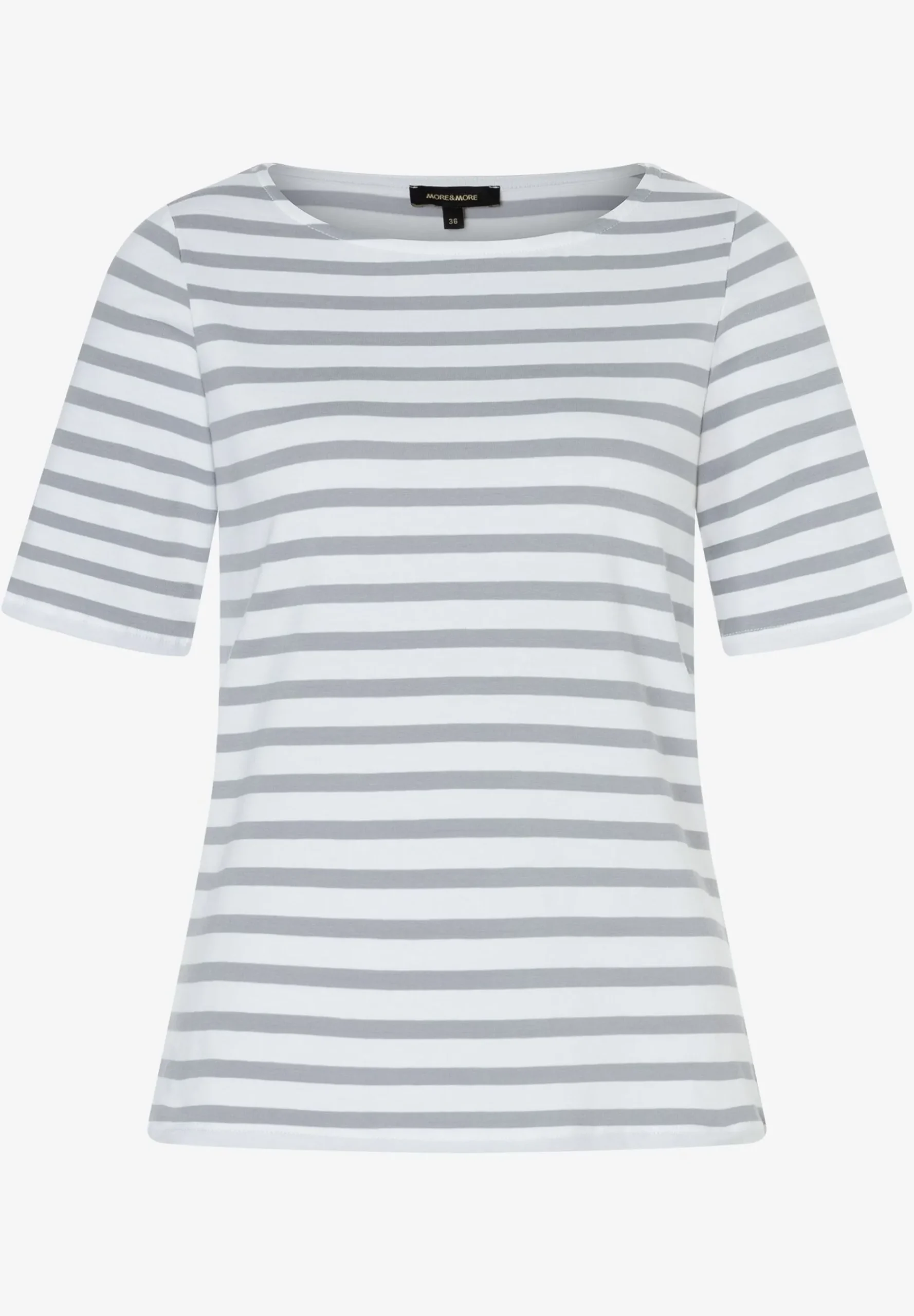 Ein absoluter „Evergreen“ von MORE & MORE ist das zweifarbige Streifenshirt mit kurzen Ärmeln und U-Boot Ausschnitt. Es funktioniert zum seriösen Businessanzug genauso gut wie zur verwaschenen Jeans oder zum fließenden Sommerrock.