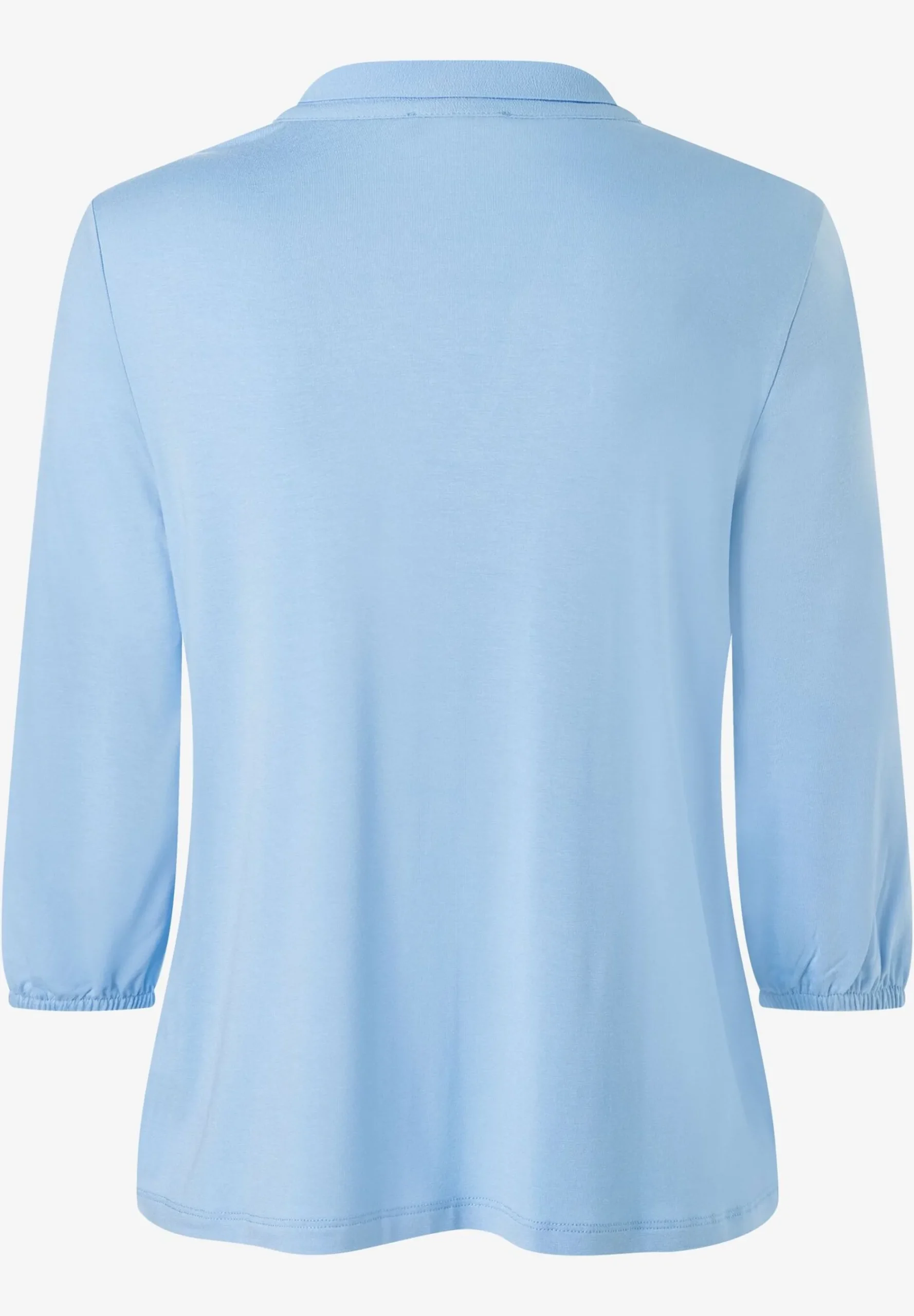 Das feminine Blusenshirt von MORE & MORE mit Stehkragen und 3/4 langen Ärmeln ist sehr vielseitig kombinierbar und bietet eine tolle Mischung aus Bluse und Shirt.