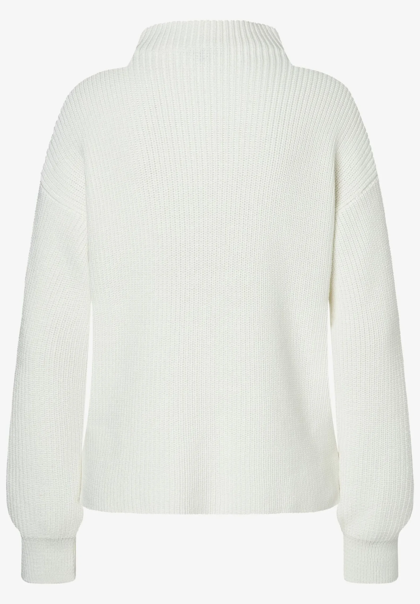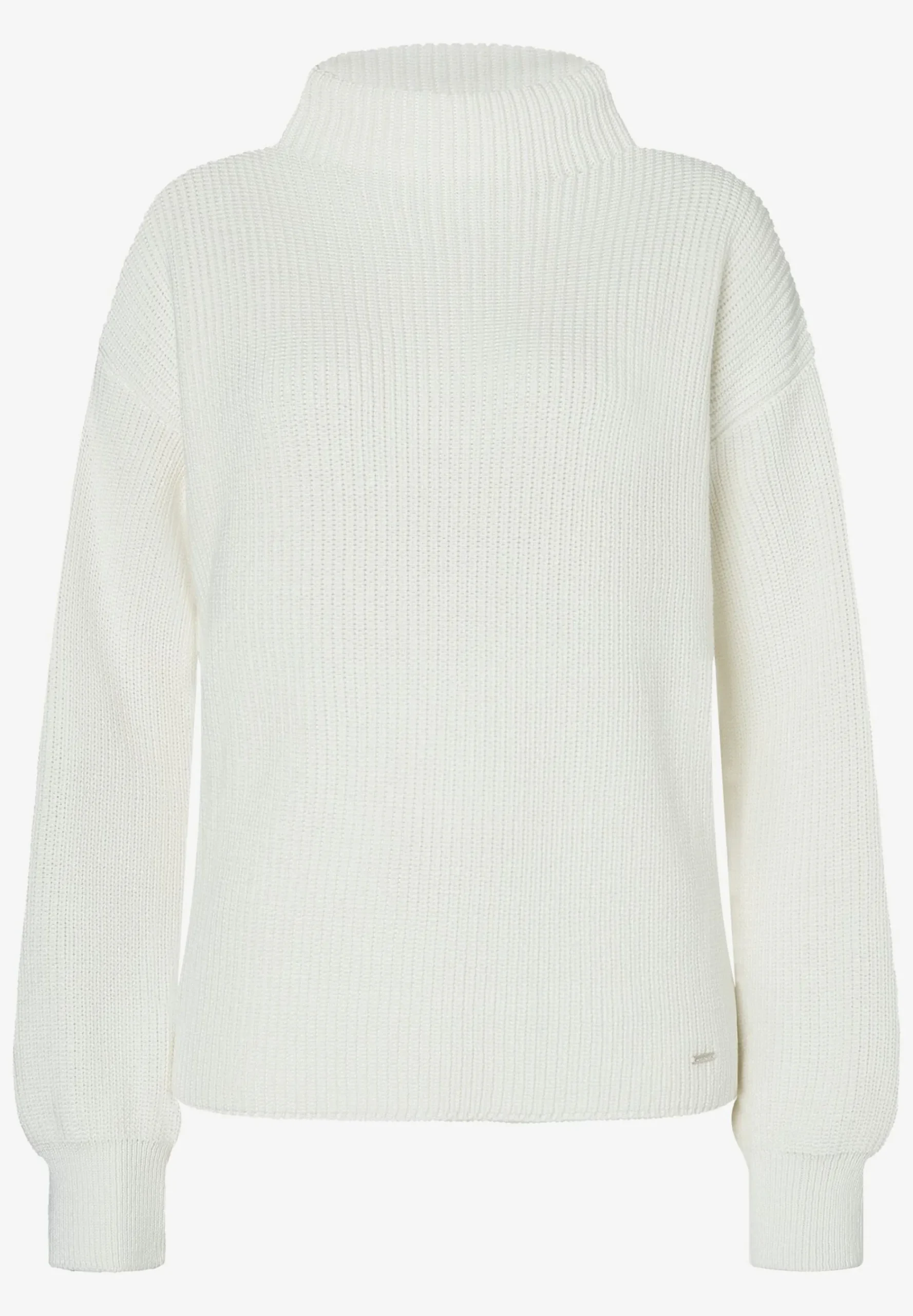 Der lässige Rippen-Pullover von MORE & MORE mit hohem Kragen läßt sich easy kombinieren, mal sportiv mit used Denim, …