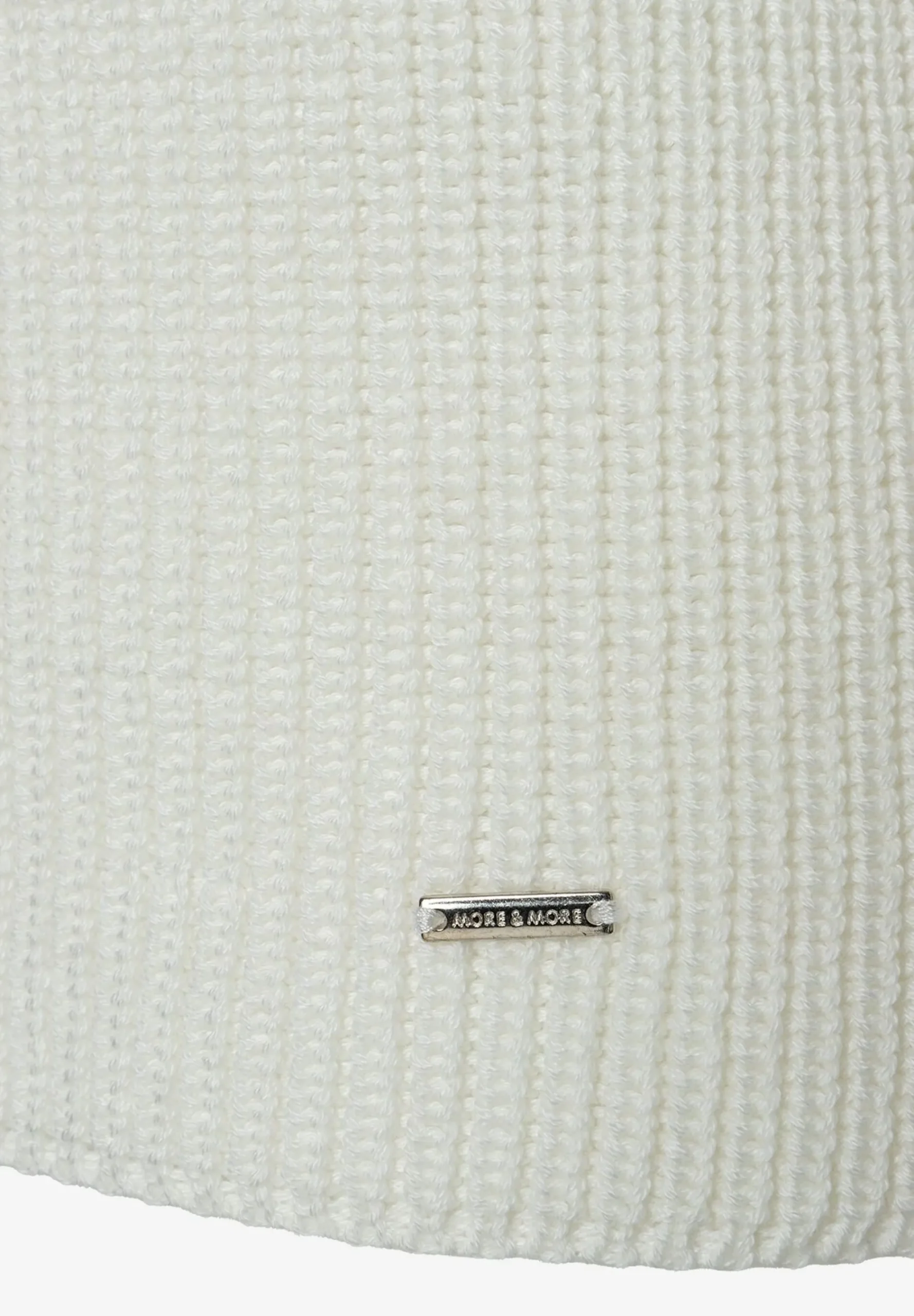 Der lässige Rippen-Pullover von MORE & MORE mit hohem Kragen läßt sich easy kombinieren, mal sportiv mit used Denim, mal urban mit Glencheck-Pants.