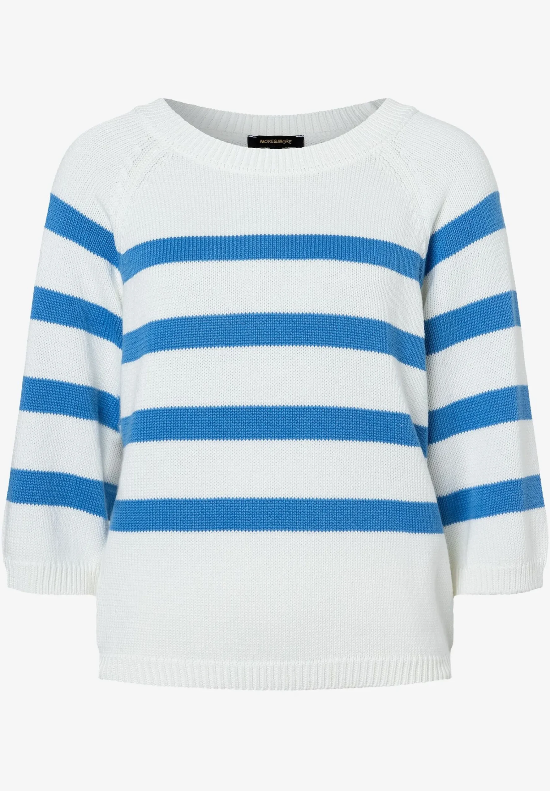 Der maritim inspirierte Streifenpullover von MORE & MORE mit 3/4 langen Ärmeln sieht zur lässigen Jeans oder klassischen Businesshose gleichermaßen gut aus, kann aber auch zum fließenden Rock gestylt werden.