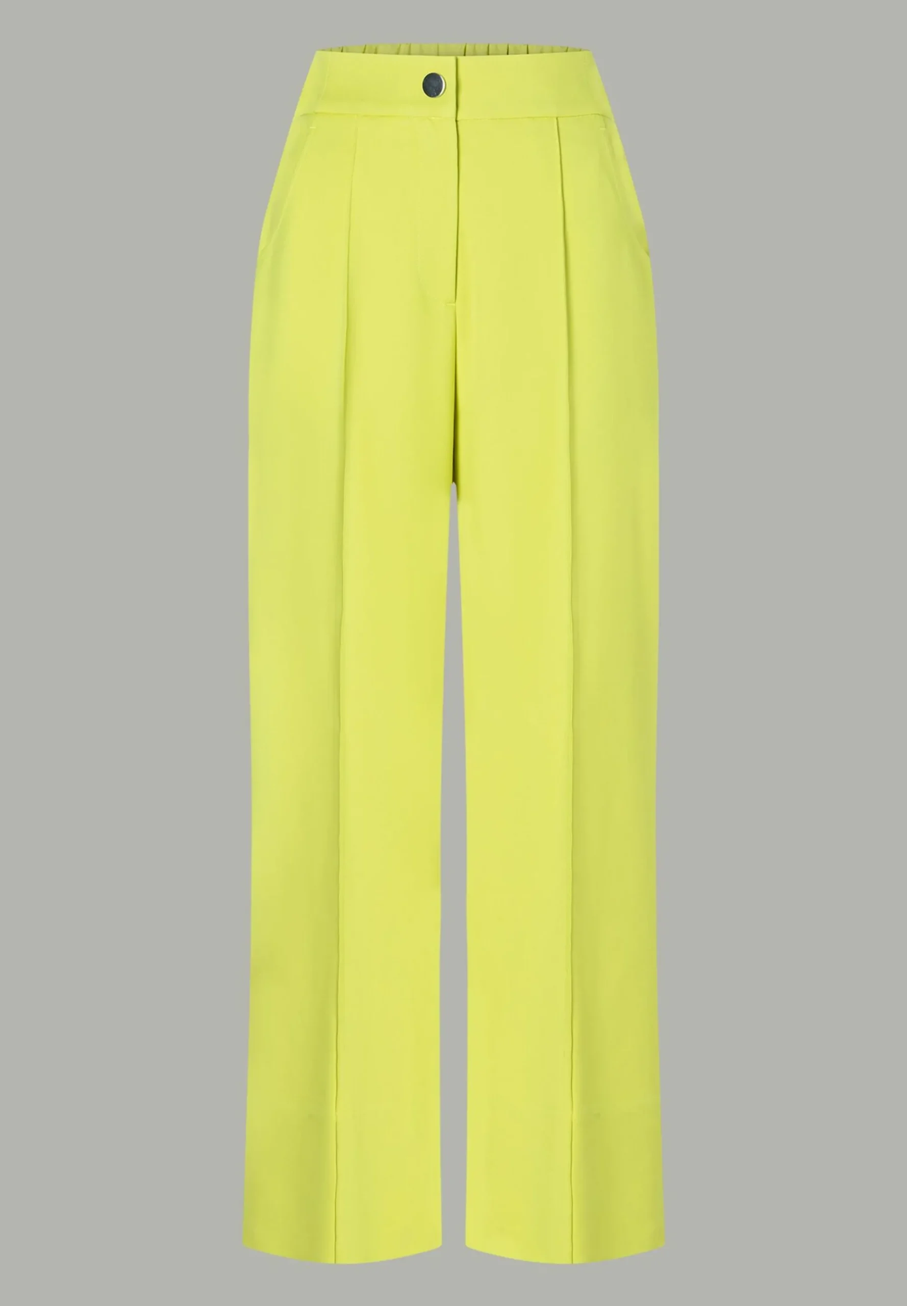 Die lime-gelbe Hose aus unserer neuen MORE Kollektion ist garantiert ein Highlight in Ihrem Kleiderschrank. Stylen Sie die weite, verkürzte Hose ganz easy mit schlichten Shirts und Blusen zu einem unangestrengten Trend-Look.